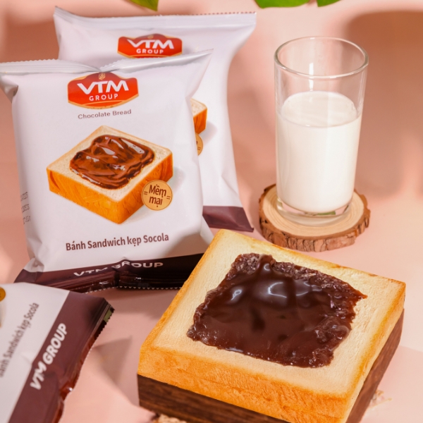Được sản xuất trên dây chuyền công nghệ hiện đại chuẩn quốc tế, bánh sandwich VTM Group có kết cấu bánh mềm xốp tự nhiên, không khô, không gắt, cùng lớp nhân kẹp được chế biến từ nguồn nguyên liệu tươi ngon, an toàn và giàu dinh dưỡng. Mỗi chiếc bánh là sự hòa quyện tinh tế giữa hương vị, chất lượng và sự tiện lợi – đáp ứng nhu cầu của mọi lứa tuổi, từ trẻ nhỏ đến người trưởng thành.